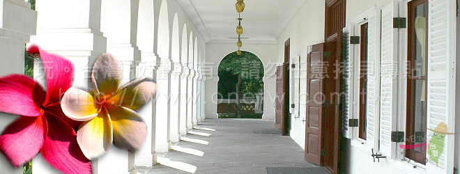 緬梔花因為其白裡透黃的可愛樣貌,所以在台灣又被稱為「雞蛋花」,是度假天堂峇里島代表性的國花,花型脫俗雅致,看到緬梔彷彿也能感受的到熱帶島嶼洋溢著的浪漫與悠閒。小白宮栽種了兩種不同的緬梔花,分別在舊官邸的褚紅色大門兩旁,白裡透黃的的緬梔花花樹擁有百年歷史,是小白宮非常非常珍貴的自然資產;另兩株樹齡比較年輕的緬梔樹,開出的花是漸層的深粉紅色,花型比傳統鵝黃色的緬梔來的大但是薄,兩種顏色的緬梔各異其趣,卻都熱鬧了夏日的小白宮庭院。緬梔花樹幹的白色乳汁,具有毒性,接觸會讓皮膚紅腫,誤食也將造成心悸或嘔吐的現象,雖然花瓣沒有毒性,但是遊客千萬不可隨便摘折樹衼,以免中毒。