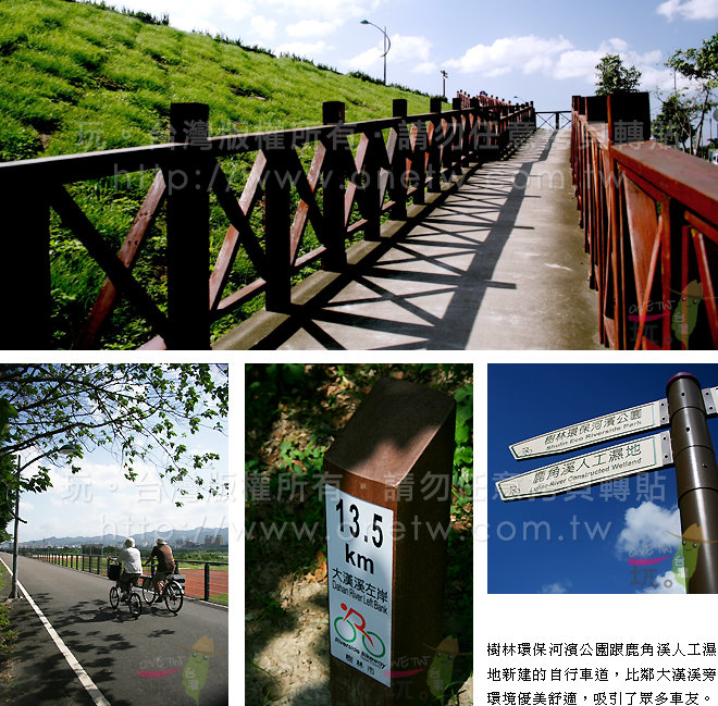 想要一日遊的遊客也可以順遊鹿角溪人工溼地,這裡是新北市很傲人的一項環保生態工程,用溼地生態池淨化水質達到零污染的水循環,此項生態工程先進國家皆大力推廣。鹿角溪人工溼地動植物生態豐富、一片綠意盎然,騎在河提的自行車道上俯瞰,自然景觀盡在眼前!此處的自行車道可以一路騎向淡水,車友們欣賞完在白浪紛飛的甜根子草花海與生態景觀,體力夠的話也可以挑戰一下自己的腳程喔!