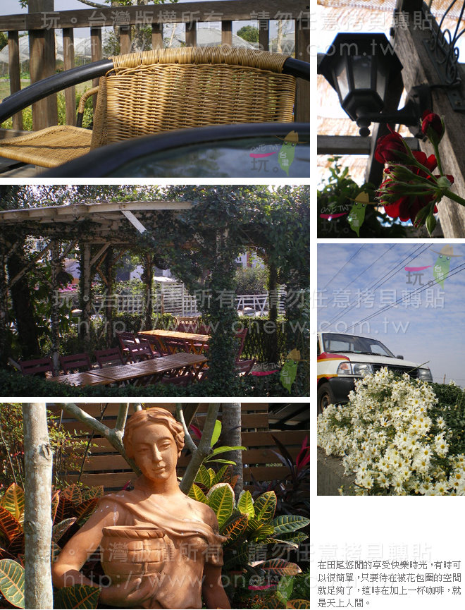由中山高速公路(國道1號)下北斗交流道往北斗方向→ 左轉台1線 → 直達田尾公路花園