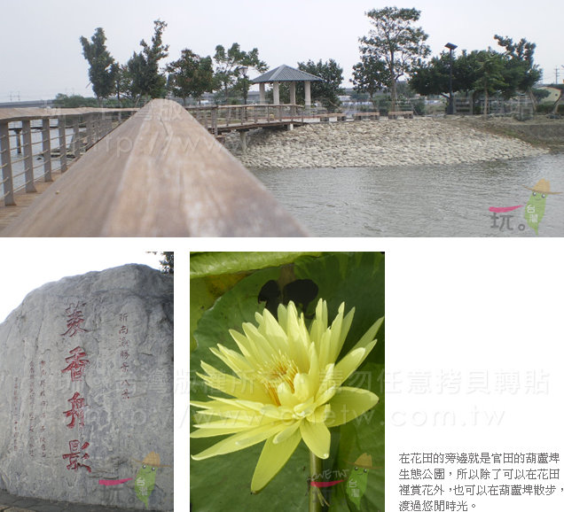 官田的花田雖不像大寮那樣著名,但是搭配著一旁國家級的風景區─葫蘆埤,讓這裡不止能賞花海,還能眺望四週葫蘆埤的美景,在搭配官田的特色菱角風味餐,保證讓人不虛此行。