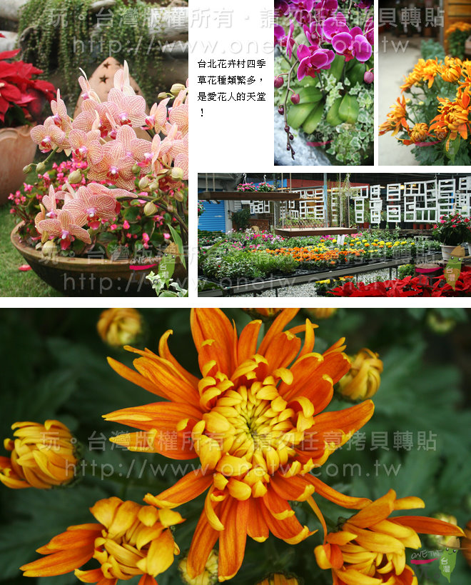 台北花卉村前身叫做社子花市,結合了花卉販賣、景觀園藝設計、花材、美食餐廳、單車與陶藝等,每年固定有特殊的花卉展覽,如12月到春節時期的蘭花大展、夏季的荷風花季與秋季花卉展,平時也都常常有教學與各種活動,吸引愛花人遊藝賞花,又能挑選各式花材與切花。