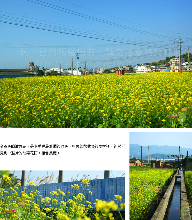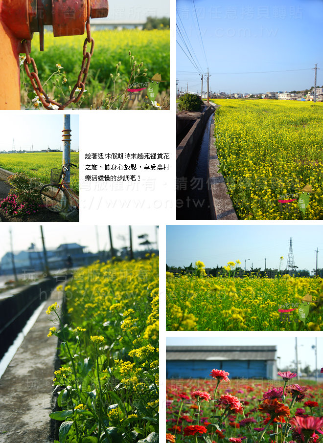 春節苑裡賞花海,苑裡鎮好山好水,宿有苗栗穀倉的美譽,也是西部最大的有機米稻作區,可口的稻米品質優良健康,而等到秋收後,油菜花海將為大地鋪蓋上最美麗的金黃地毯。
