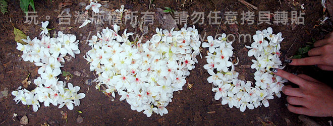 土城桐花公園日賞花、夜賞螢,離台北都會區不遠的土城是初夏郊遊踏青的好地方,桐花季時,走在山林步道間,常會看到有心的路人把桐花排成愛心之類的可愛形狀,雪白桐花在綠葉或岩石上,大自然樸實的美麗更襯托著花兒姿態寫意。昔日的經濟作物轉變成現今的觀光資產,從中南部一路到北台灣,各地的桐花季已經成為台灣指標性的賞花活動,情人牽手賞五月雪美景,絕對浪漫滿點。